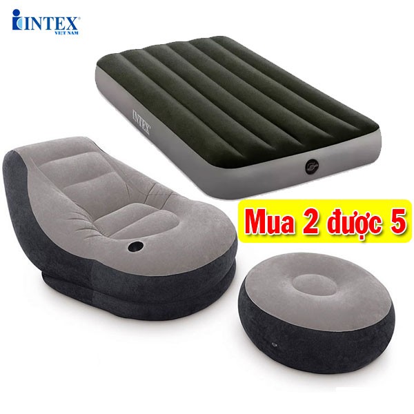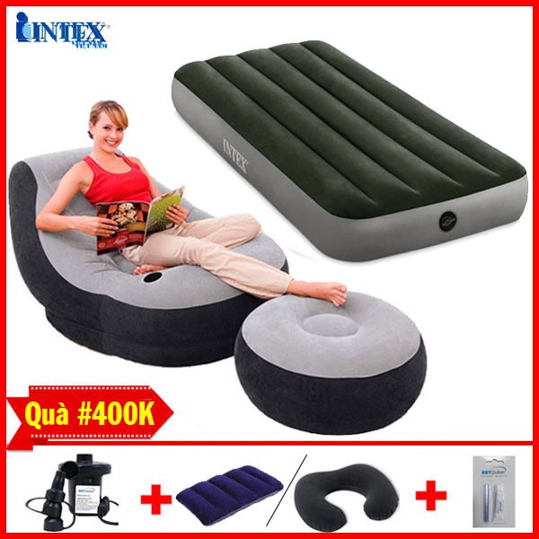 Bộ combo ghế hơi tựa lưng và đệm đơn INTEX tặng kèm bơm điện + gối hơi + bộ vá