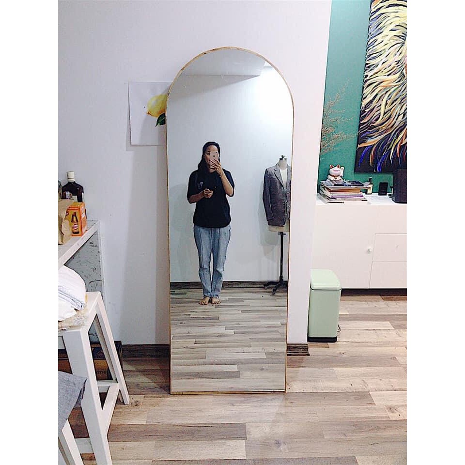 Gương khung gỗ tự nhiên bo tròn y hìnhSize : 50*1m6 có chân tựa. khách đặt không chân bớt 100k ạ