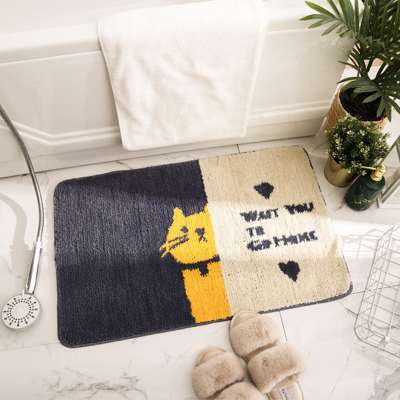 Giới thiệu Thảm Lau Chân Màu Tối Giản Họa Tiết Mèo Thỏ
