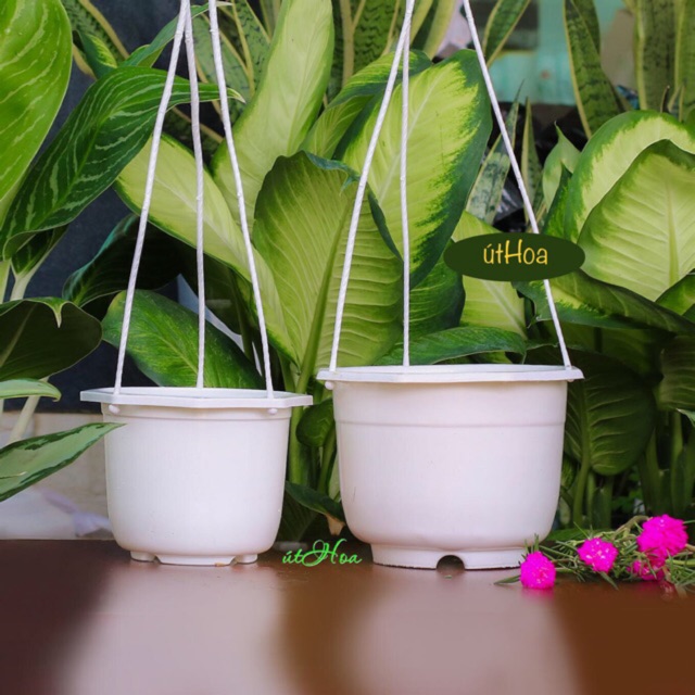 Nhà cửa & Đời sống > Làm vườn > Chậu cây || (SLL giá rẻ, có dây treo) Chậu treo trắng trơn bóng đẹp trồng hoa kiểng trang tríCòn hàng