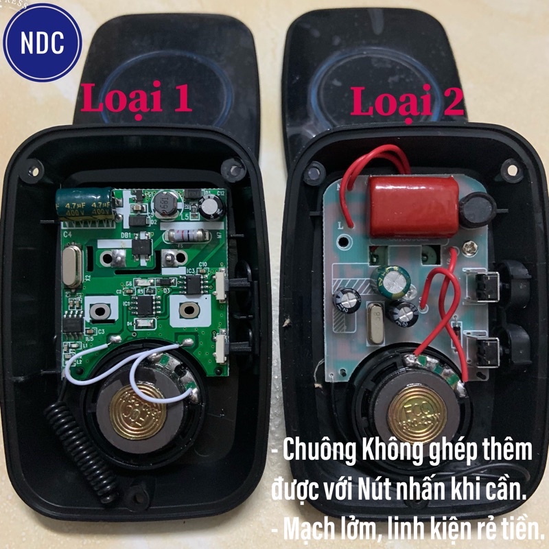 👉ĐIỀU NÀY RẤT QUAN TRỌNG (VD: TH BẠN MUỐN GHÉP THÊM NÚT, THÊM CHUÔNG, THÊM REMOTE VÀO BỘ CHUÔNG CÓ SẴN HOẶC LỠ 1 TRONG 2 BỘ PHẬN BỊ HỎNG THÌ HÀNG LOẠI 2 KHÔNG GHÉP ĐƯỢC, PHẢI MUA CẢ BỘ HOẶC LOẠI KHÁC RẤT TỐN KÉM).
