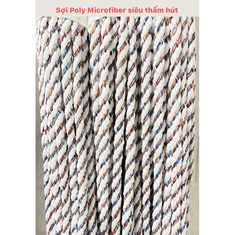- Sợi lau microfiber có khả năng thấm hút bụi bẩn cực cao cùng với thiết kế bạn chỉ cần vắt nhẹ, không cần phải dùng tay vắt khô sợi lau đảm bảo vệ sinh và không làm ảnh hưởng đến da tay của bạn.