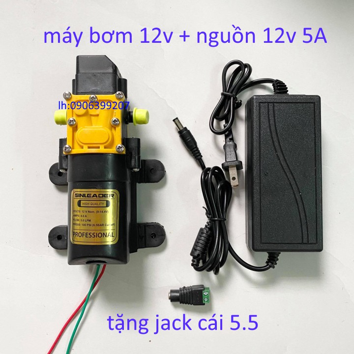 Máy bơm sinleder 12v 60W + nguồn 12v 5AỨng dụng : Làm Máy Rửa Xe , Máy Phun Sương , Máy xịt thuốc , tưới cây , máy bơm tăng áp