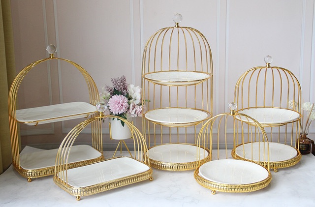 Khay bánh kẹo hoa quả hình lồng chim trang trí