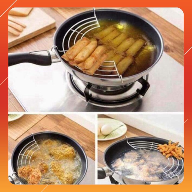 🌼 VỈ GÁC CHẢO BẰNG INOX DÙNG KHI CHIÊN RÁN.♨Vỉ với thiết kế thông minh, có 3 chân gác vững chắc trên thành chảo, các thanh inox được uốn tròn để không chiếm diện tích cản trở việc nấu nướng.
