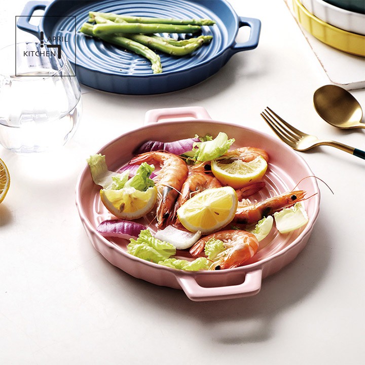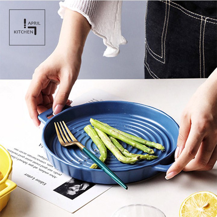 Khay nướng bánh gốm sứ hình tròn tay cầm cách nhiệt khuôn nướng thịt đút lò KNB02