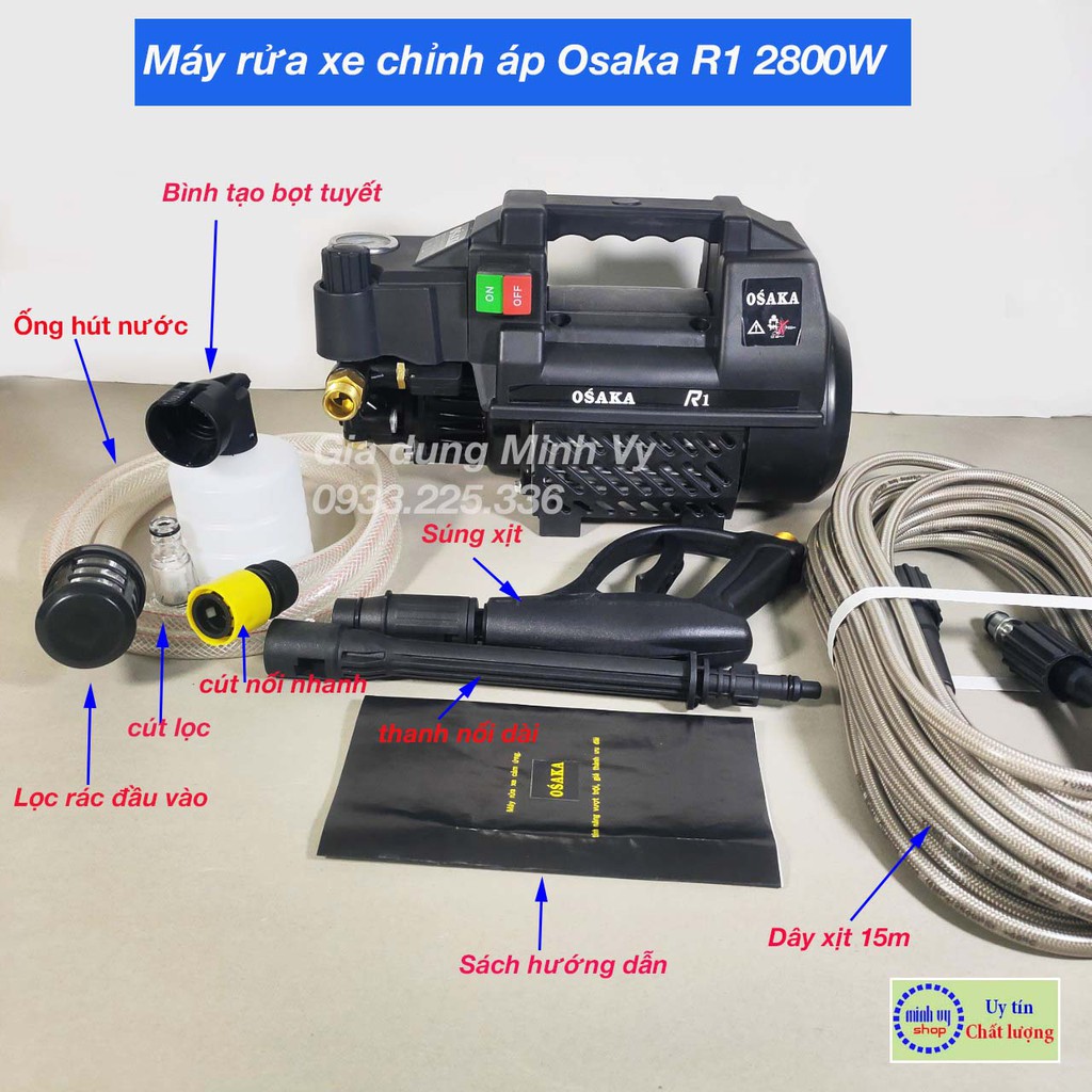 Máy xịt rửa điều hòa- máy rửa xe chỉnh áp Osaka R1 - 2800W - Dây 15 mét