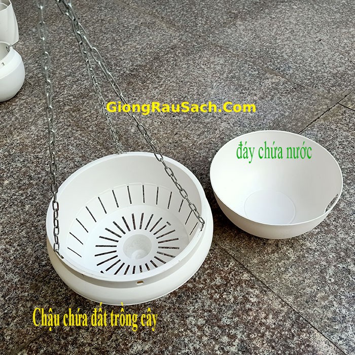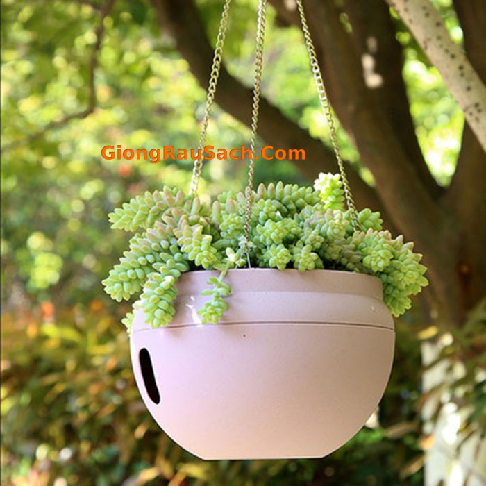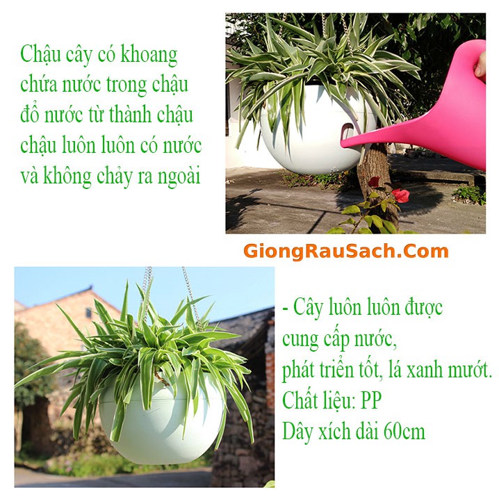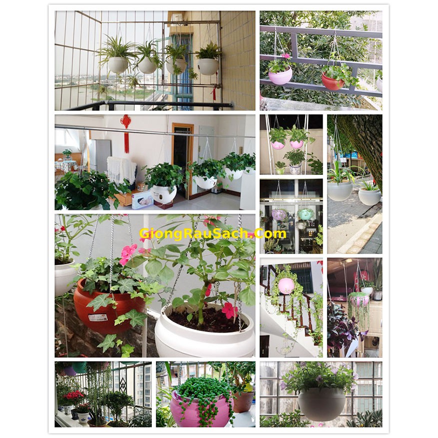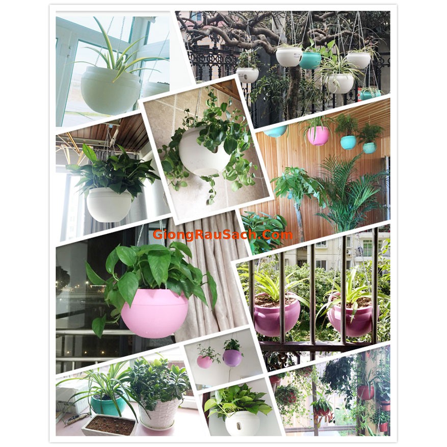 Chậu trồng cây treo thông minh dùng trồng các loại cây thân thảo, rủ như dạ yến thảo, dừa cạn, 10h mỹ... hay các loại cây cảnh trong nhà như vạn liên thanh, bà trầu, dương sỉ... hay trồng các loại rau ăn lá, rau thơm, su hào bắp cải....Chậu có đáy cháy chứa nước thừa không làm bẩn nền nhà khi tưới, làm nền sân vườn luôn khô ráo.