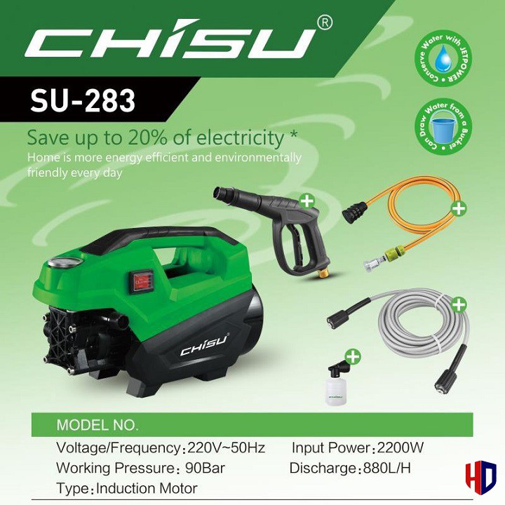 Giới thiệu MỚI!!!! Máy Rửa Xe CHISU 2000W-2200W Ap Lực Cao - Cảm Ứng Từ - Lõi Đồng 100%
