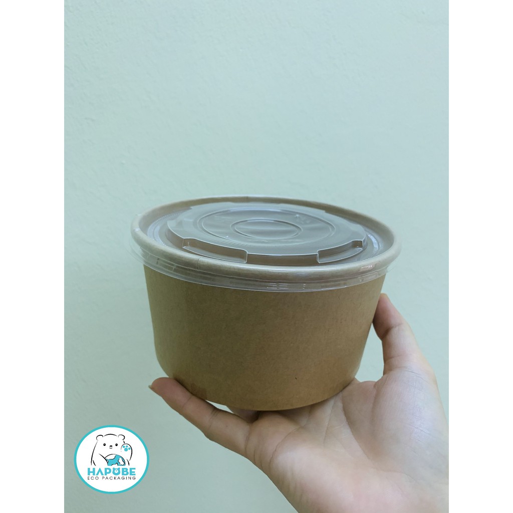 Giới thiệu Combo 100 bát giấy kraft kèm nắp 1050ml EBZ006 Hapobe