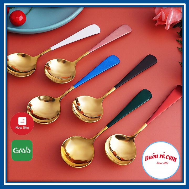 ✔️ Thìa Inox Mạ Vàng Cán Dài Nhiều Màu Với thiết kế tròn, rộng phù hợp khuôn miệng, dễ dàng xúc cơm, soup, cháo...