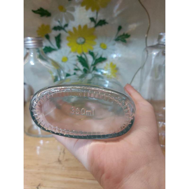 chai thủy tinh thân vuông dẹp cổ cao nắp nhômdung tích 350ml