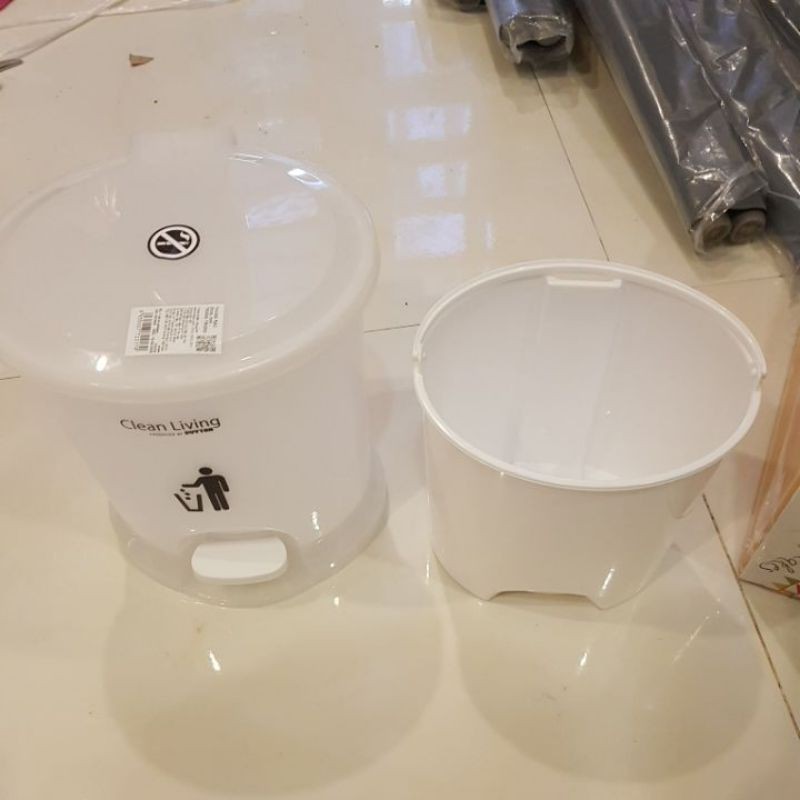 Tích hợp chân đạp giúp việc mở/đóng nắp nhanh chóng và vệ sinh. Thùng nhỏ bên trong giúp thu gom rác, có tay xách tiện dụng