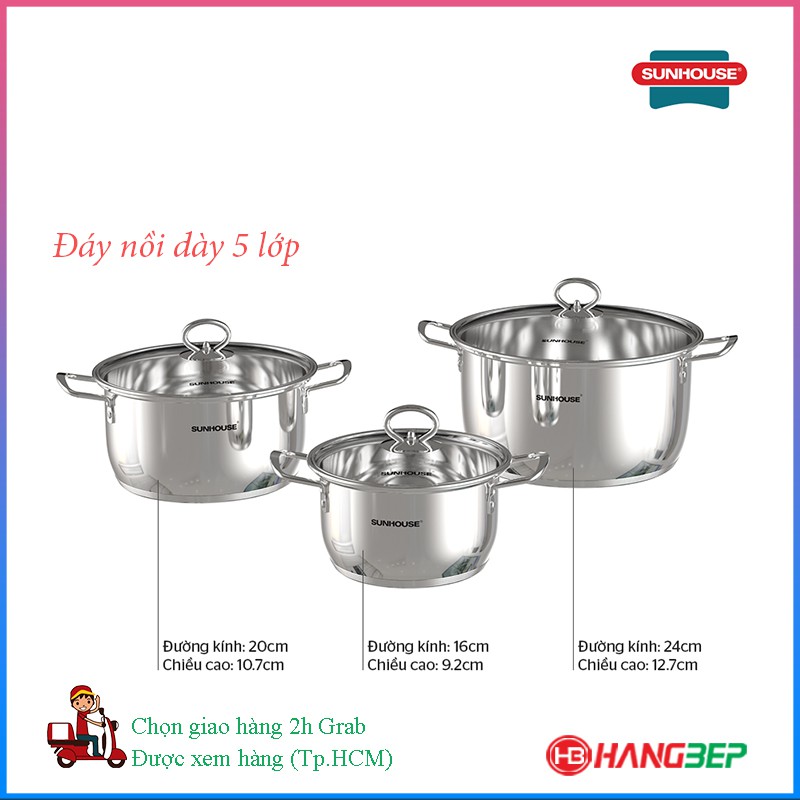 Nhà cửa & Đời sống > Dụng cụ nhà bếp > Nồi || Bộ 3 nồi inox 5 đáy Sunhouse SHG788 [new model 11.2020]Còn hàng