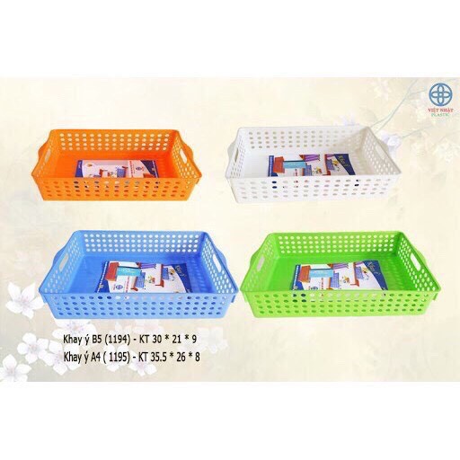 KHAY NHỰA CHỮ NHẬT, RỔ NHỰA A4 B5 NHỰA VIỆT NHẬT ĐỦ MÀULưu ý: Sản phẩm chỉ gồm 1 khay lớn.