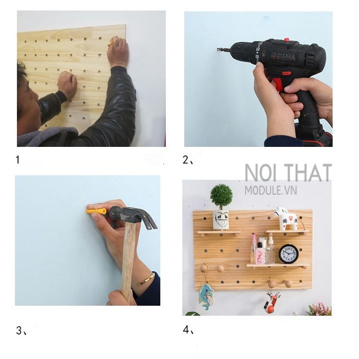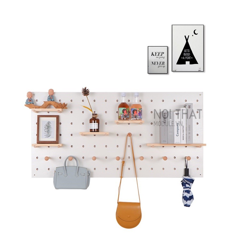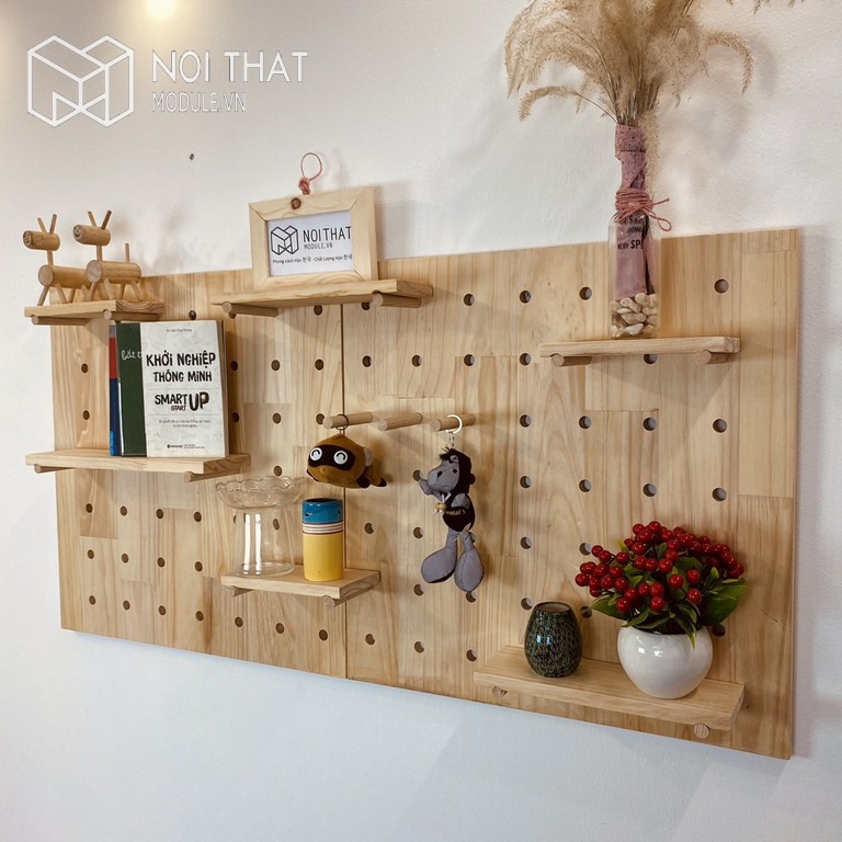 THÔNG SỐ KỸ THUẬT:Bảng gỗ treo tường đa năng là một trong những kệ treo cài bảng gỗ đục lỗ