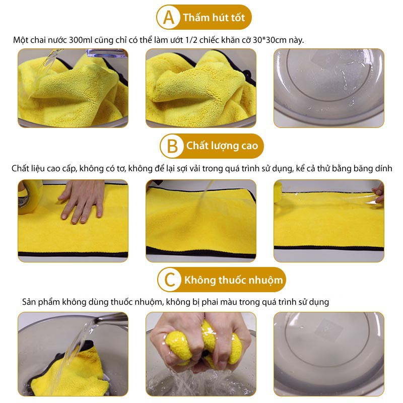 🍀 Chất liệu: Cấu tạo từ các sợi siêu nhỏ giúp khăn có khả năng siêu thấm hút, dễ dàng lau chùi các bề mặt bếp hay bàn ghế mà KHÔNG để lại bất kỳ một vết cặn hoặc vết trầy xước. Chất liệu sợi siêu mềm, khó bị mài mòn và 1 chiếc khăn đa năng như vậy có thể hấp thụ gấp tám lần trọng lượng của nó và không cần phải thêm bất kỳ hóa chất nào để làm sạch. Kết cấu sợi mềm đặc biệt giúp lau sạch bụi bẩn một cách tối đa mà không gây xước đồ vật. Khăn không ra lông, không để lại bụi, khả năng thấm hút tốt. Có thể sử dụng nhiều lần.Nhỏ gọn và tiện lợi, có thể mang theo để chăm sóc xe mọi lúc, mọi nơi.
