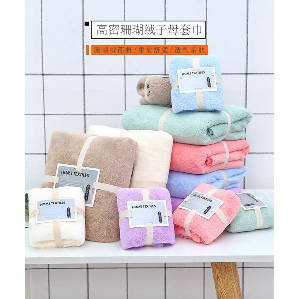 - Tên sản phẩm: Bộ 2 khăn tắm lớn cao cấp, khăn tắm lông cừu 70x140 và 35x75 lông mềm thấm hút tốt không rụng lông