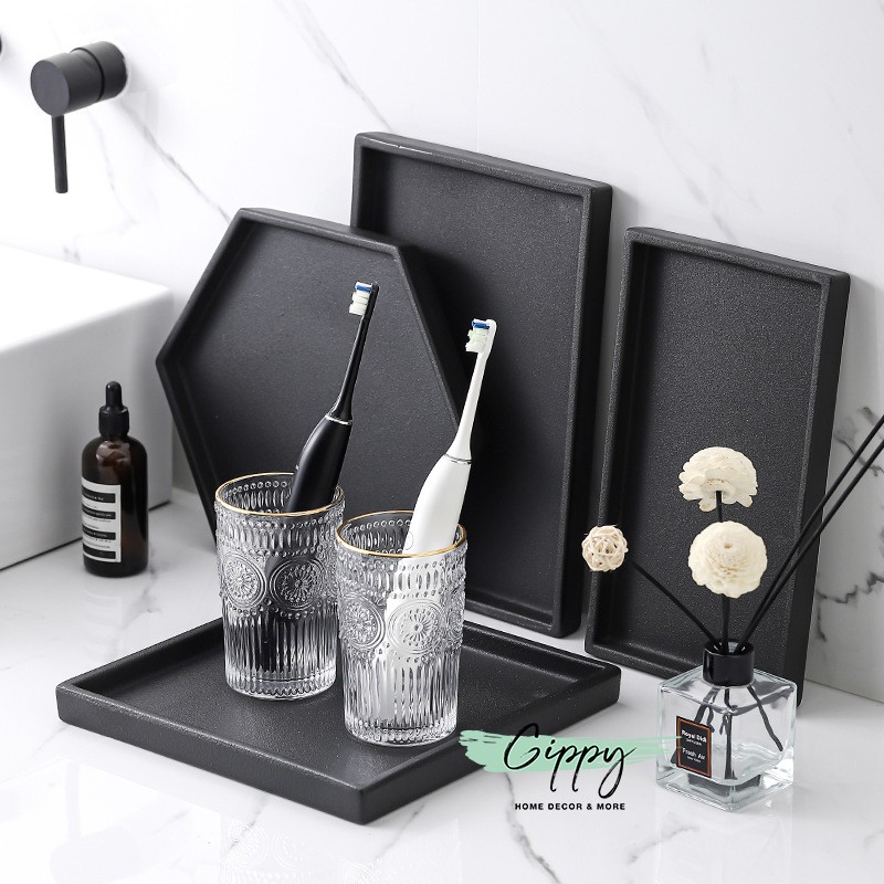 Giới thiệu Khay sứ vân đá granite xám/ đen nhám - phụ kiện trang trí - Gippy Decor