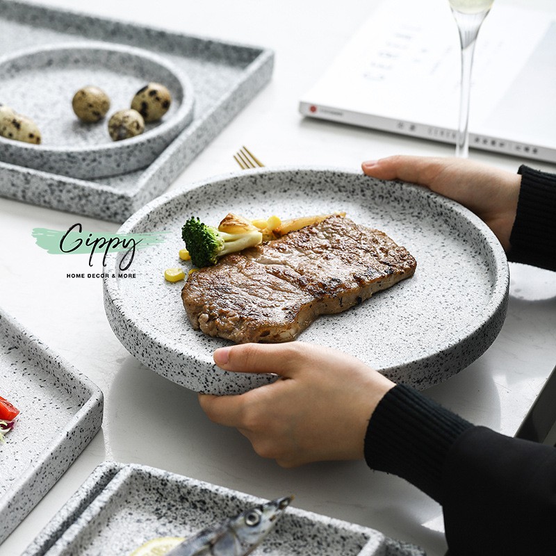 Nhà cửa & Đời sống > Bộ đồ bàn ăn > Dĩa || Khay sứ vân đá granite xám/ đen nhám - phụ kiện trang trí - Gippy DecorCòn hàng
