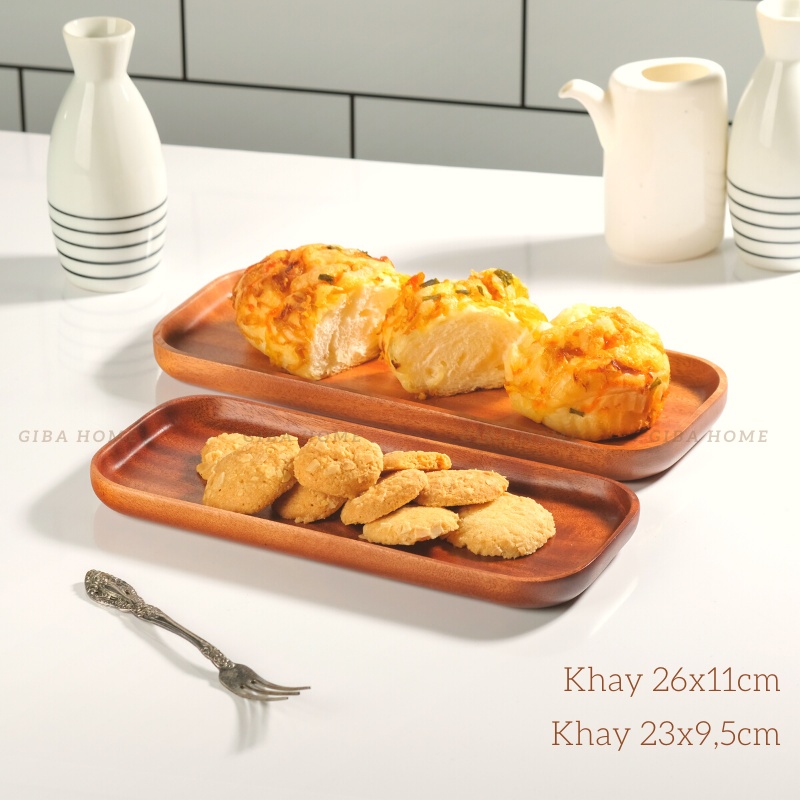 Dĩa gỗ chữ nhật đựng bánh - Khay gỗ chữ nhật decor - GIBA