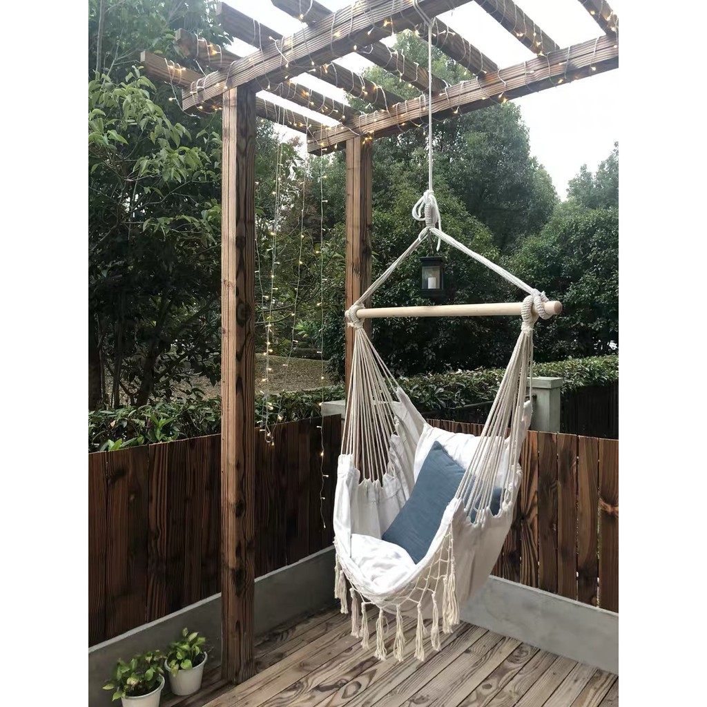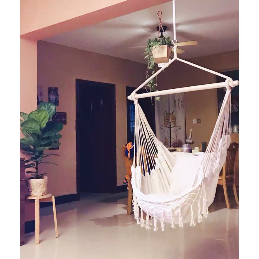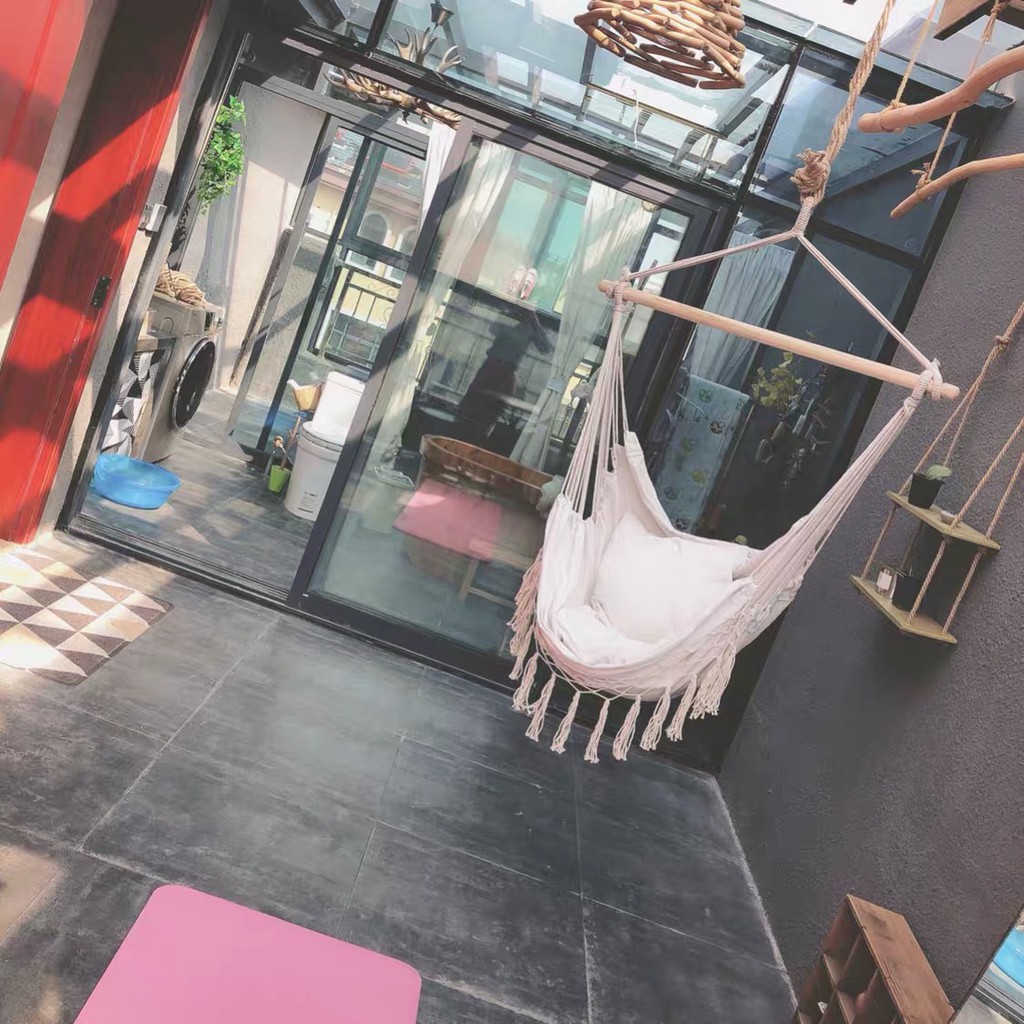 Phong cách võng handmade Chic mang lại cảm giác phong cách và độc đáo cho bất kỳ ngôi nhà nào. Dây thừng và xích đu được thiết kế với họa tiết Ghế lưới ren và tua rua. Sản xuất bông thủ công, rửa tay, để ngăn chặn các yếu tố ngoài trời.