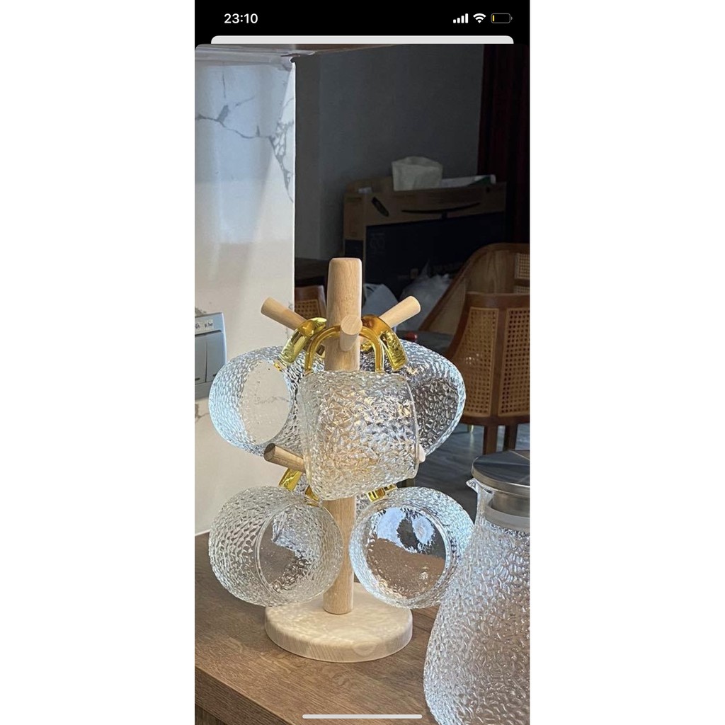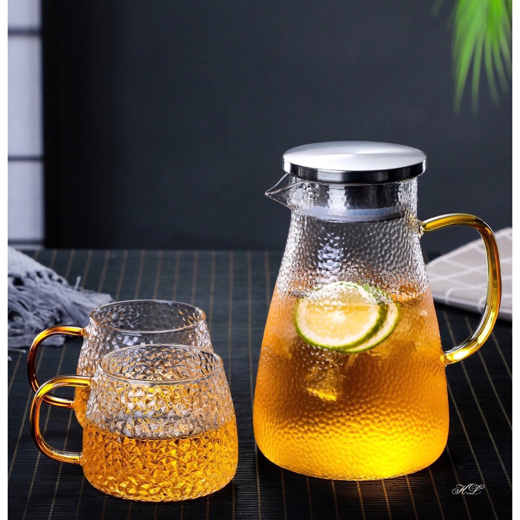 Nhà cửa & Đời sống > Bộ đồ bàn ăn > Bình nước & phụ kiện || Bộ bình cốc thủy tinh sần quai vàng sanh chảnhCòn hàng