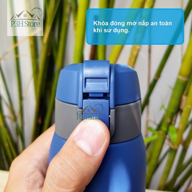 - Nắp bình có khóa an toàn giúp bình không bị bật nắp và chống rò rĩ nước.