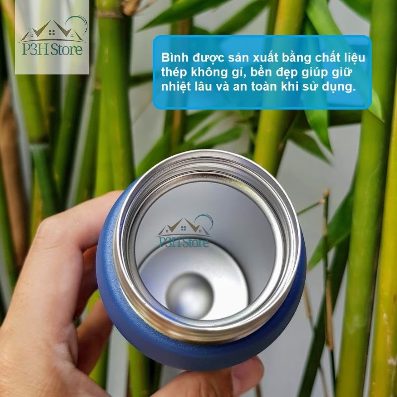 - Bình được sản xuất bằng chất liệu thép không gỉ, bền đẹp giúp giữ nhiệt lâu và an toàn khi sử dụng.