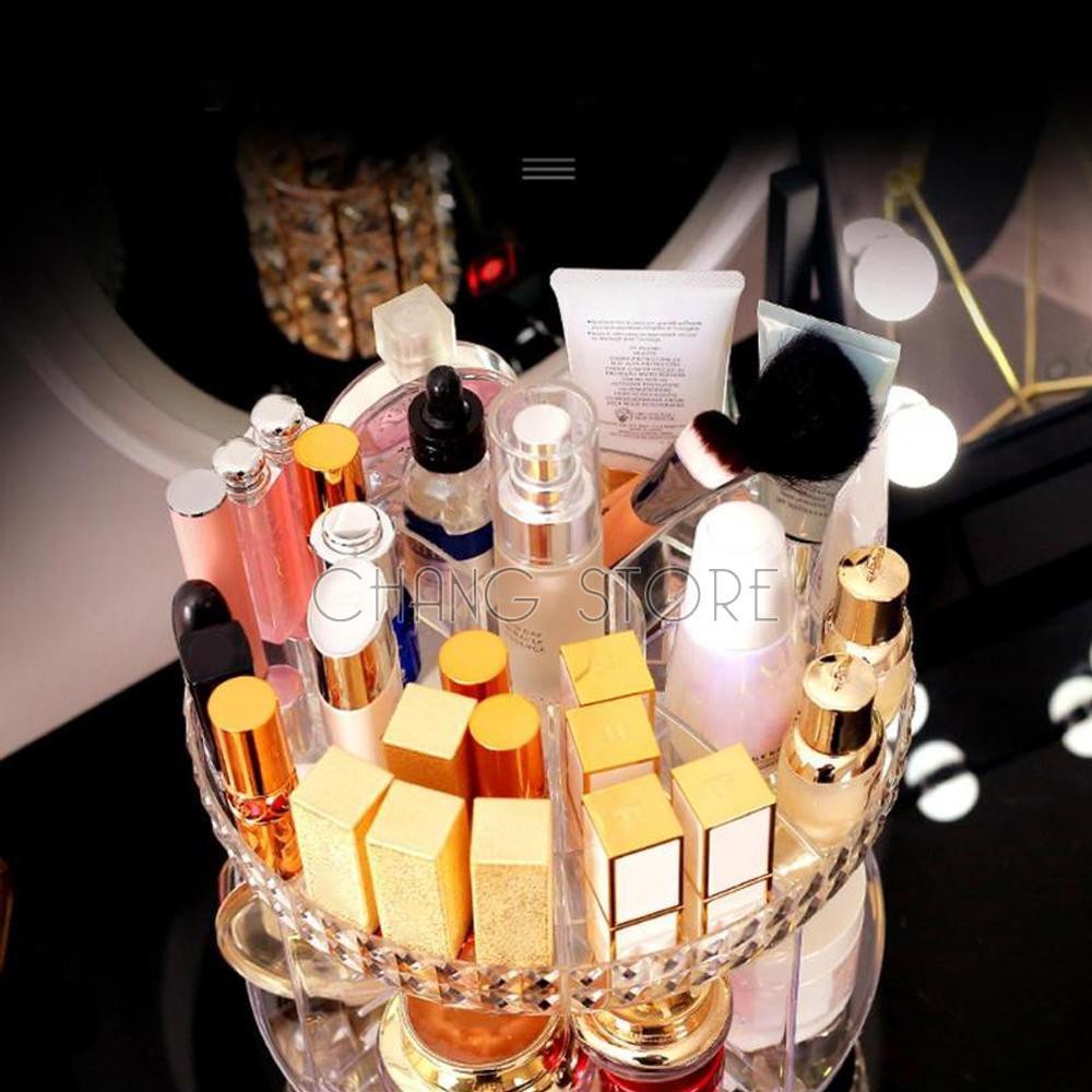 Kệ Để Mỹ Phẩm Và Đồ Trang Điểm Nhựa Mica Xoay 360 Độ