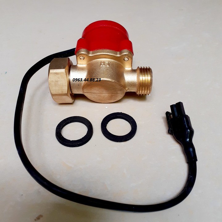 Khi có dòng nước chảy qua sẽ là cụm cảm biến đóng tiếp điểm >> thông mạch làm cho thiết bị điện hoạt đông. Khi không có dòng nước chảy qua thì tiếp điểm sẽ mở và thiết bị ngừng hoạt động.