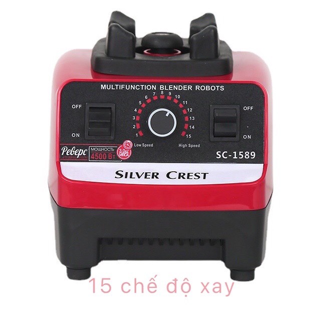 - Sử dụng mô tơ 5HP (mã lực), máy xay sinh tố công nghiệp SILVER CREST SC-1589 cho công suất cao lên tới 4500W.