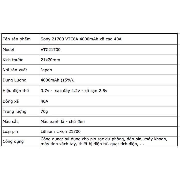 Giới thiệu [P41] Pin 21700 Japan Sony VTC6A mới 100% 4000mah xả tối đa 45A chuyên khoan pin vap