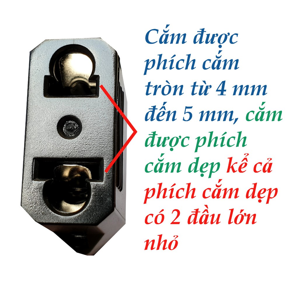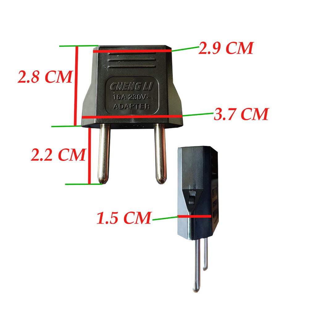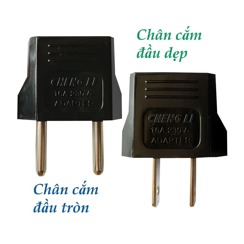 -Phích cắm có thể dùng để chuyển đổi từ chân cắm tròn ra chân cắm dẹp hoặc từ chân cắm dẹp ra tròn.
