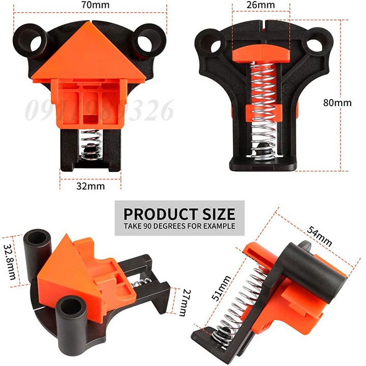 _ Công dụng: kẹp nhanh giữ chặt các chi tiết để bắn vít, dán keo..._ Có thể kẹp góc vuông, góc chữ T, góc 45-60-120 độ