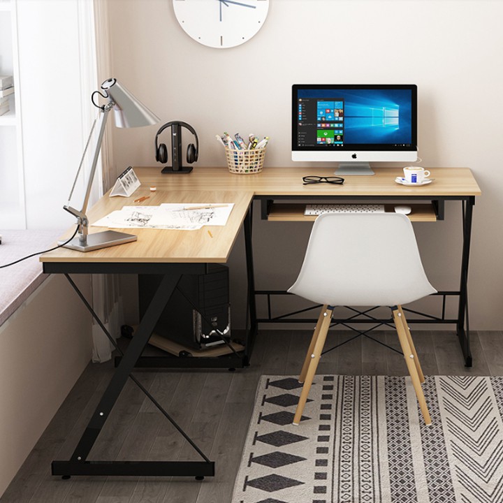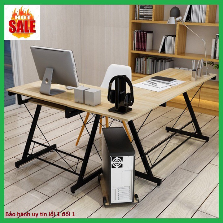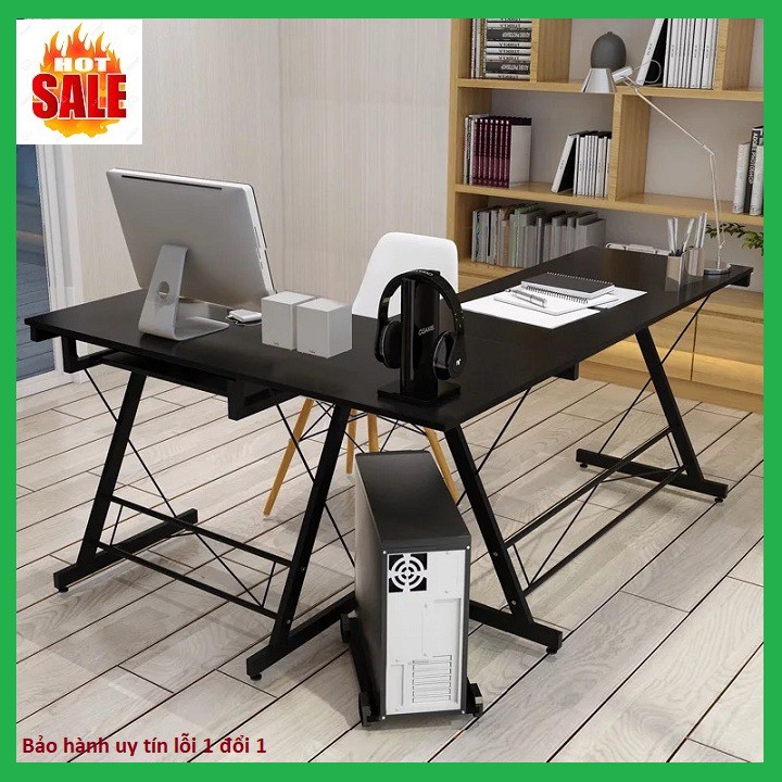 Nhà cửa & Đời sống > Nội thất > Bàn || Bàn làm việc chữ L chân chéo SC1, màu đen, có ngăn để bàn phímCòn hàng