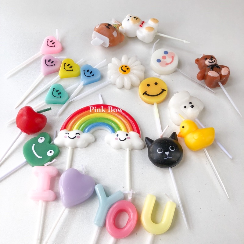 Nến sinh nhật hình con gấu/hoa cúc/vịt/tim/mặt cười/cầu vòng phong cách Hàn Quốc, cho chiêc bánh của bạn thêm xinh👉 Chất liệu: sáp không mùi, an toàn