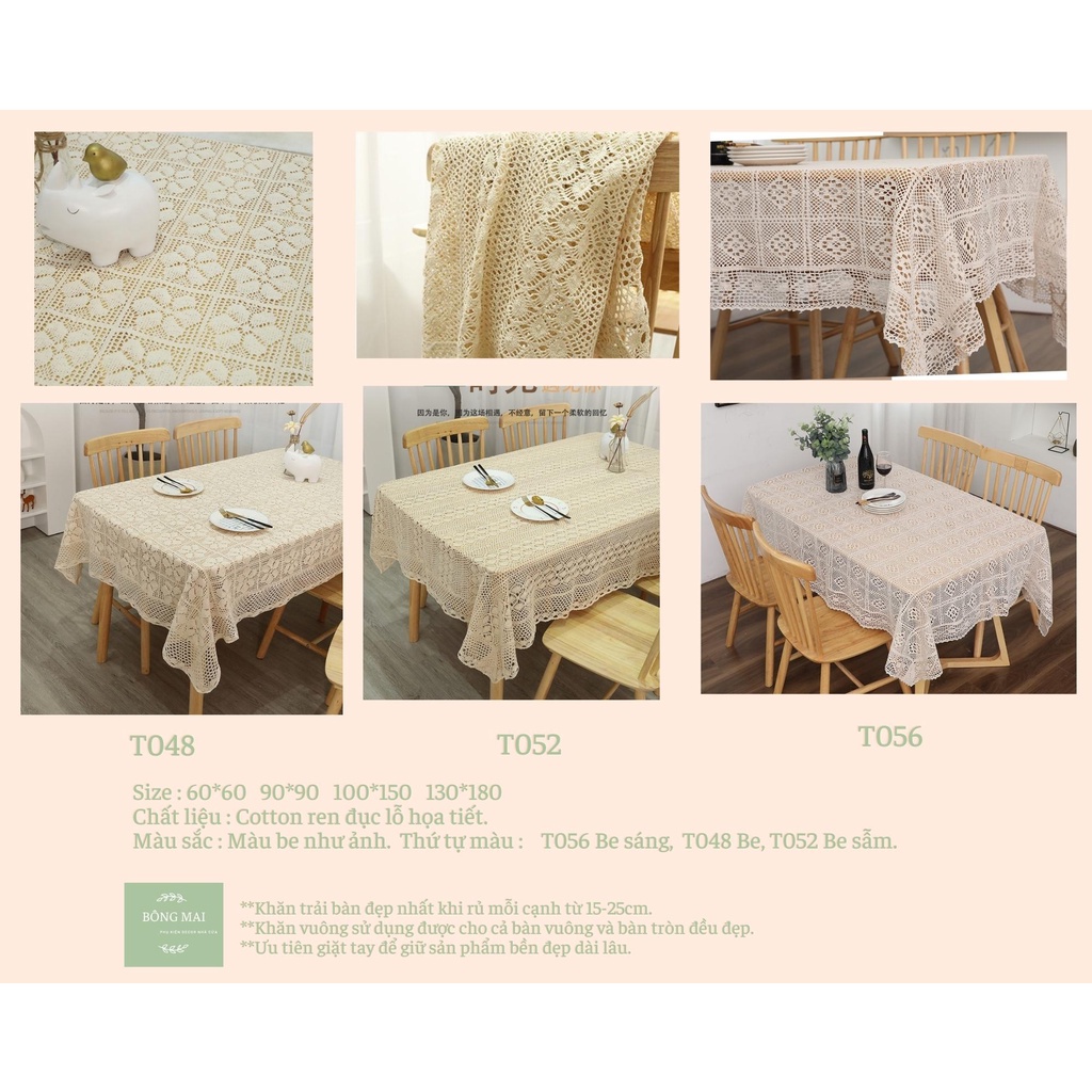 Khăn trải bàn ren đục lỗ phong cách vintage cổ điểnKhăn được sử dụng với nhiều công dụng : khăn trải bàn trà, trải bàn làm việc, trải sofa decor phòng, thảm picnic, phụ kiện chụp ảnh.