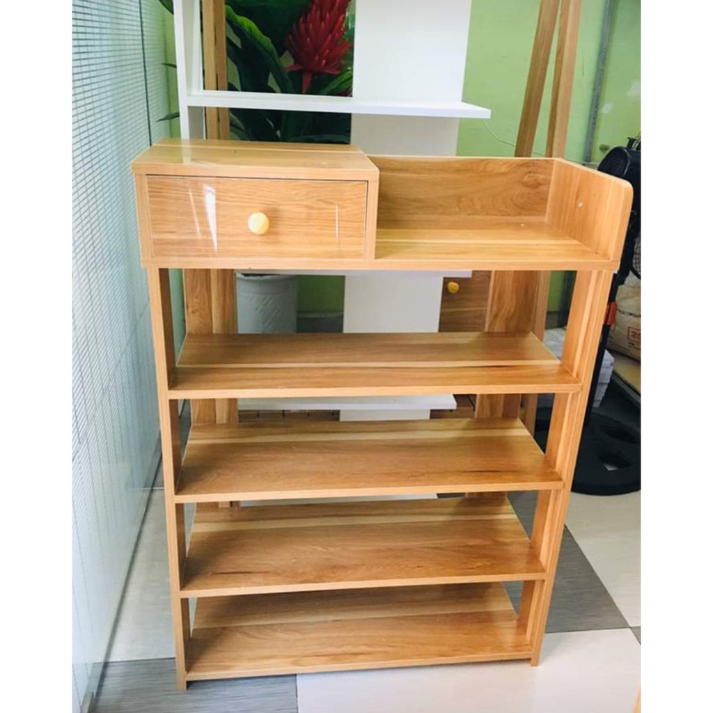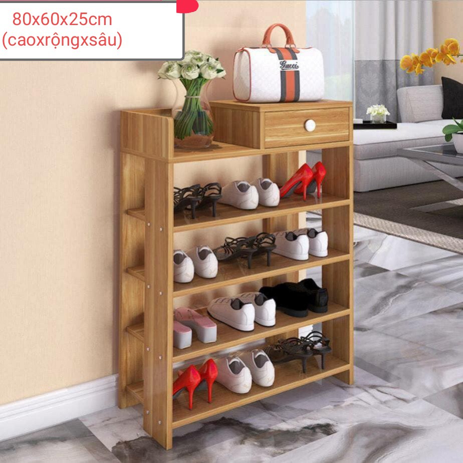 KỆ ĐỂ GIÀY GỖ 5 TẦNG✅ Kệ được thiết kế 5 tầng để giày dép và 1 ngăn kéo tủ đồ cá nhận như : xi đánh giày, vật dụng khác....
