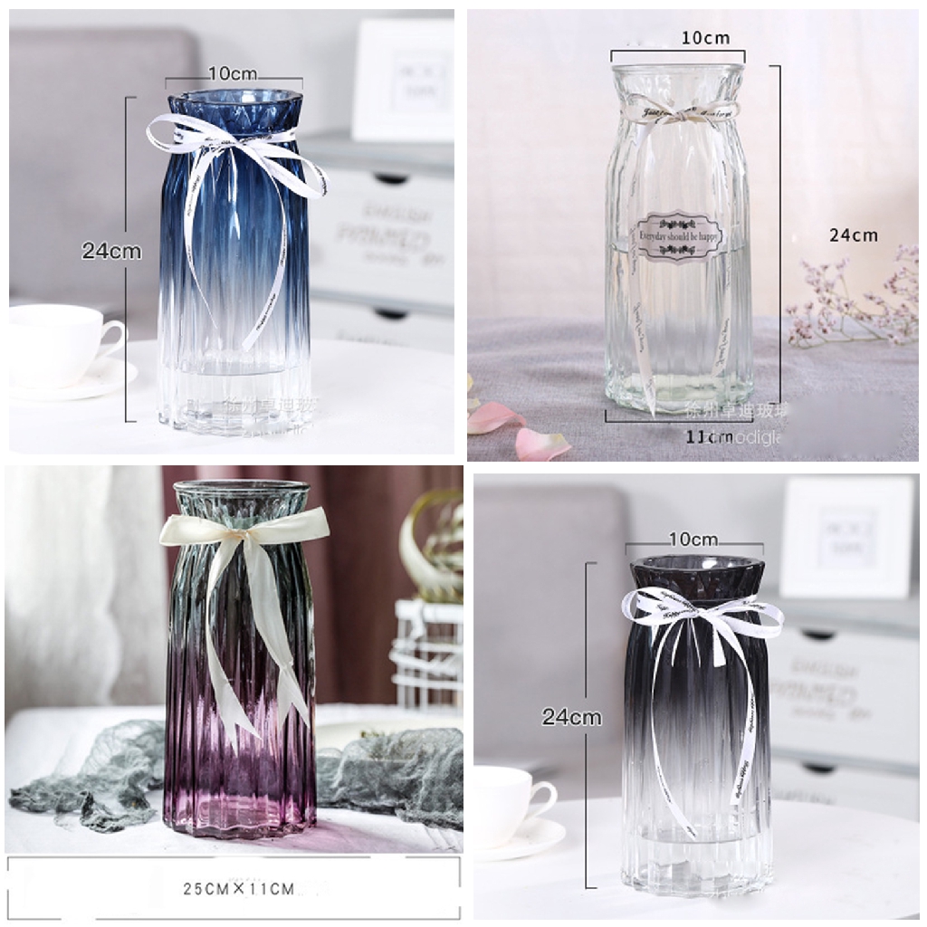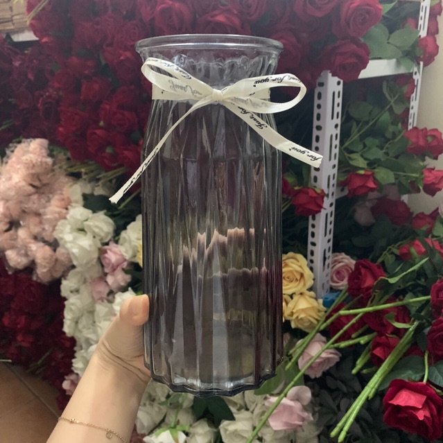 Nhà cửa & Đời sống > Trang trí nhà cửa > Bình trang trí || Lọ hoa thủy tinh có nơ xinh xắn - RỘNG 10CM CAO 24CM - nhiều màu, có ảnh thậtCòn hàng