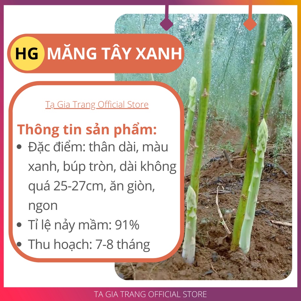 Nhà cửa & Đời sống > Làm vườn > Hạt giống & chất hỗ trợ trồng cây || Hạt giống măng tây xanhCòn hàng