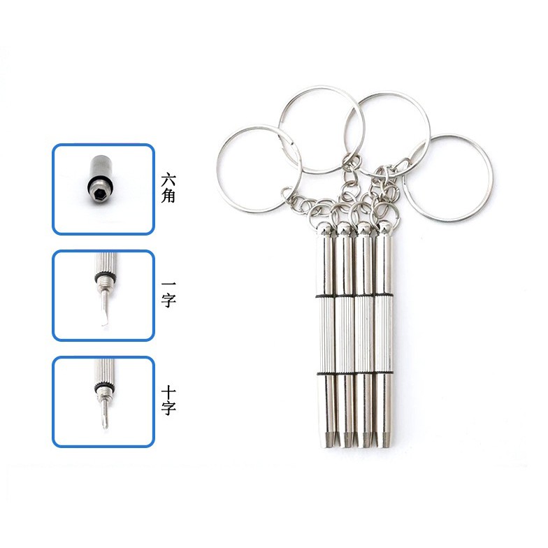 Nhà cửa & Đời sống > Dụng cụ & Thiết bị tiện ích > Dụng cụ > Khác || móc khóa tua vít sửa chữa mắt kính/ đồng hồ mini 3 trong 1Còn hàng