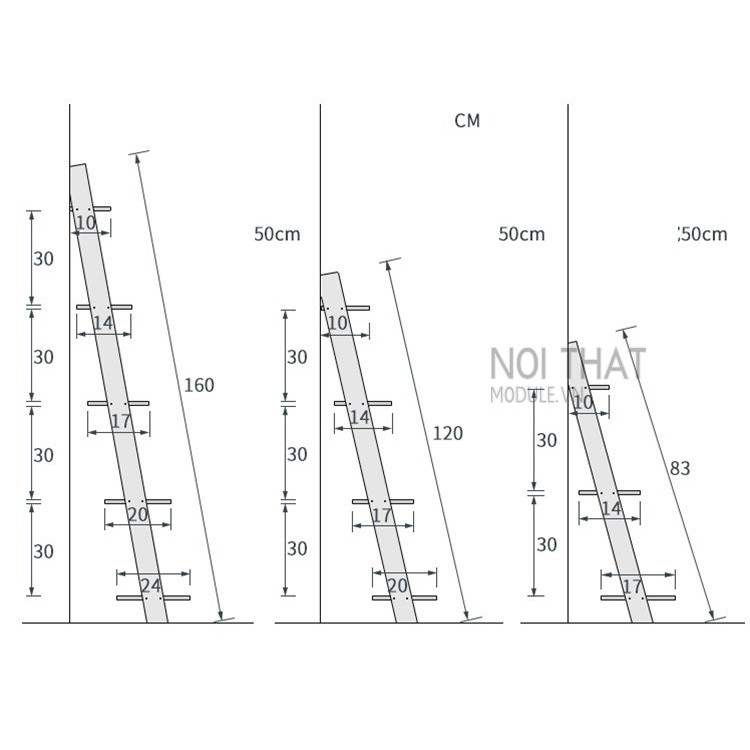 THÔNG SỐ KỸ THUẬT:Kệ hình thang loại 3 tầng gỗ thông tự nhiên