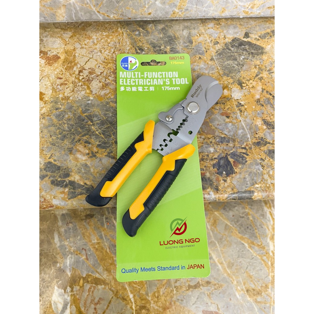 Kìm Cắt cáp-Tuốt dây-Bấm cos đa năng cao cấp Nhật Bản 3 trong 1 Buddy BA0143 - BA144