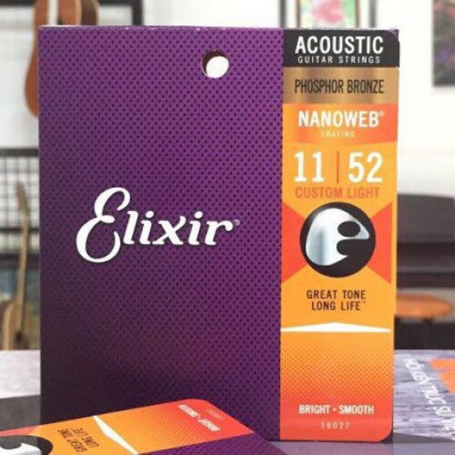 Dây đàn guitar Elixir (bộ đủ 6 dây) phân phổi bởi G4U guitar✅ Dây đàn guitar acoustic Elixir có nhiều mã hàng với 3 size dây 10, 11, 12. Nhưng phổ biến nhất là mã hàng 16027 size 11, phổ biến với tất cả các bạn chơi guitar acoustic. Dây đàn elixir này chất lượng cao trong tầm giá hơn 100k!