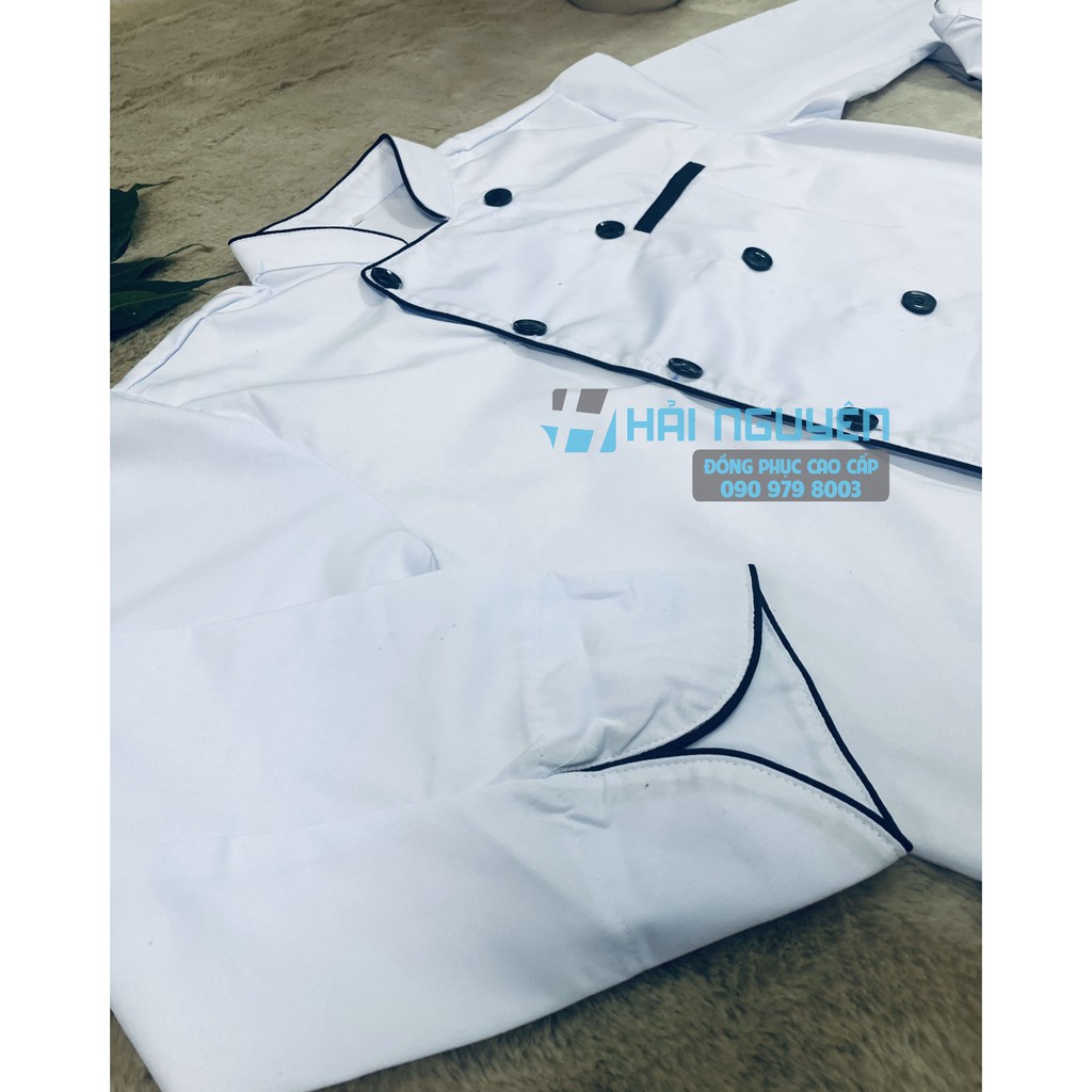 Áo bếp MÀU TRẮNG dài tay - dành cho đầu bếp nhà hàng- Chất liệu: vải kaki cotton Hàn Quốc