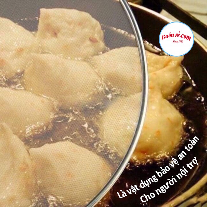 • Lưới đậy chống văng dầu mỡ được thiết kế hình tròn, dưới dạng một lớp lưới dày khít có tác dụng ngăn dầu mỡ văng ra ngoài khi bạn chiên, xào, rán các món ăn.