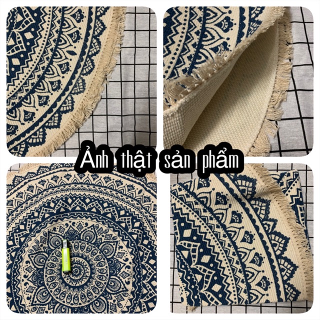 - Kích thước: Đường kính thảm là 92cm (Bao gồm cả phần tua rua)