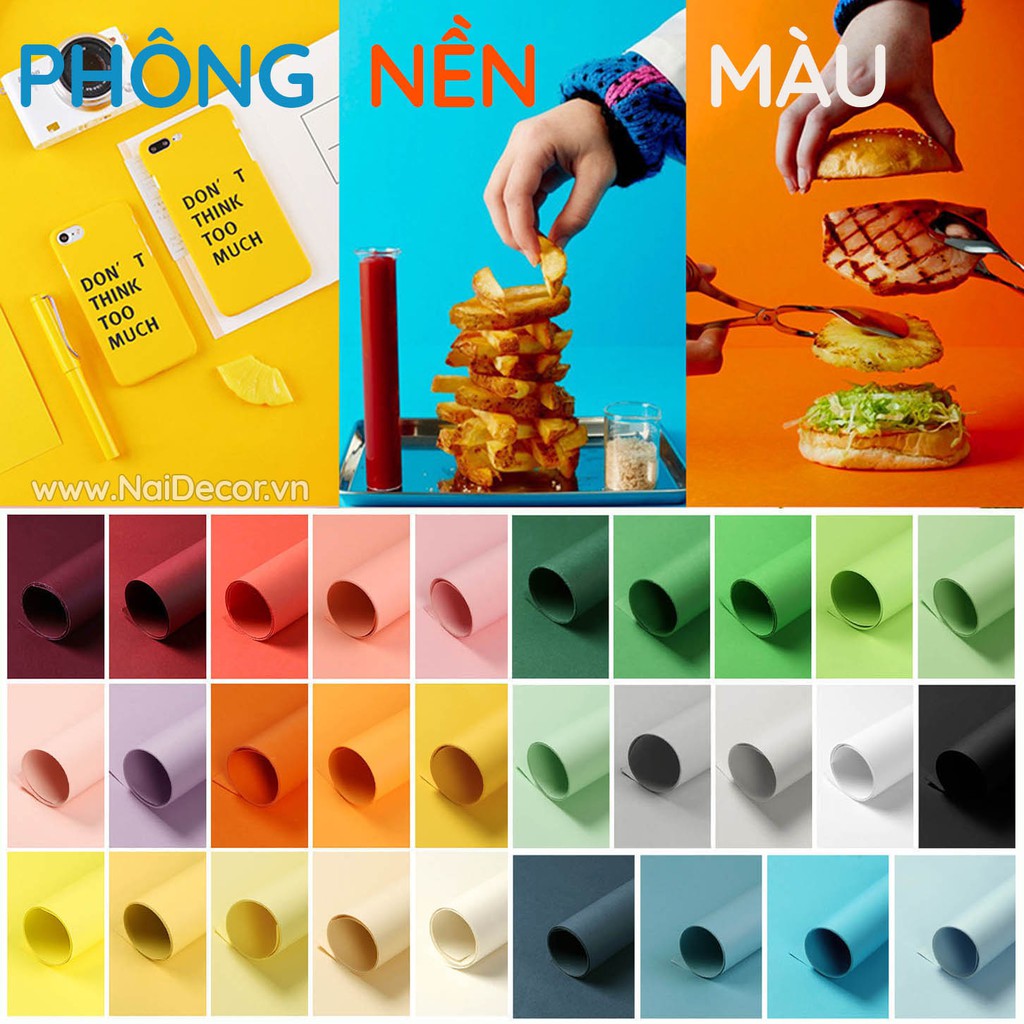Phông nền giấy màu chụp ảnh sản phẩm với nhiều tông màu giúp bạn dễ dàng phối và chọn tông cho phù hợp với concept của mình.