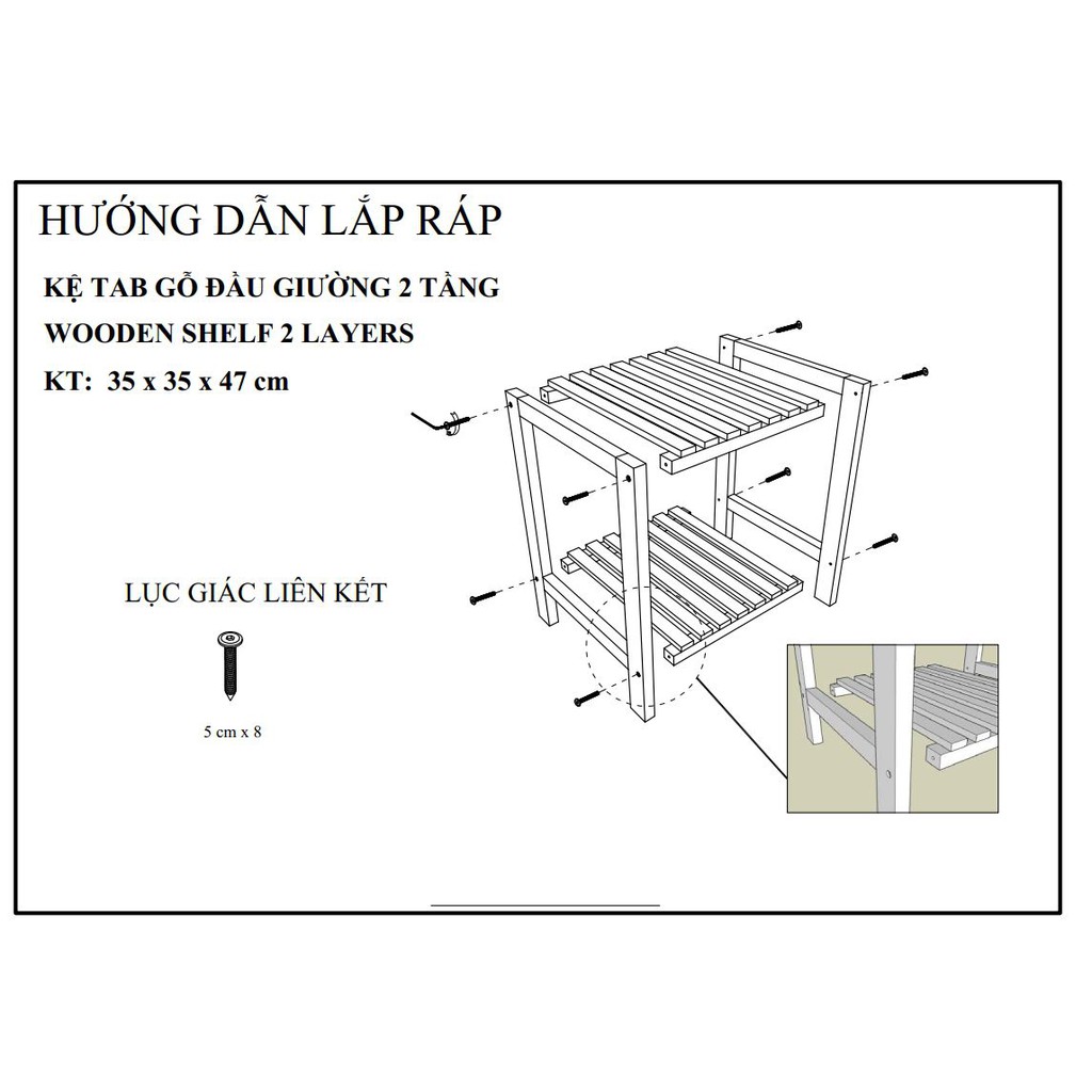 Sản phẩm TỰ LẮP RÁP, sản phẩm được gửi kèm nguyên bộ dụng cụ lắp ráp bao gồm đinh vít, lục giác và giấy hướng dẫn